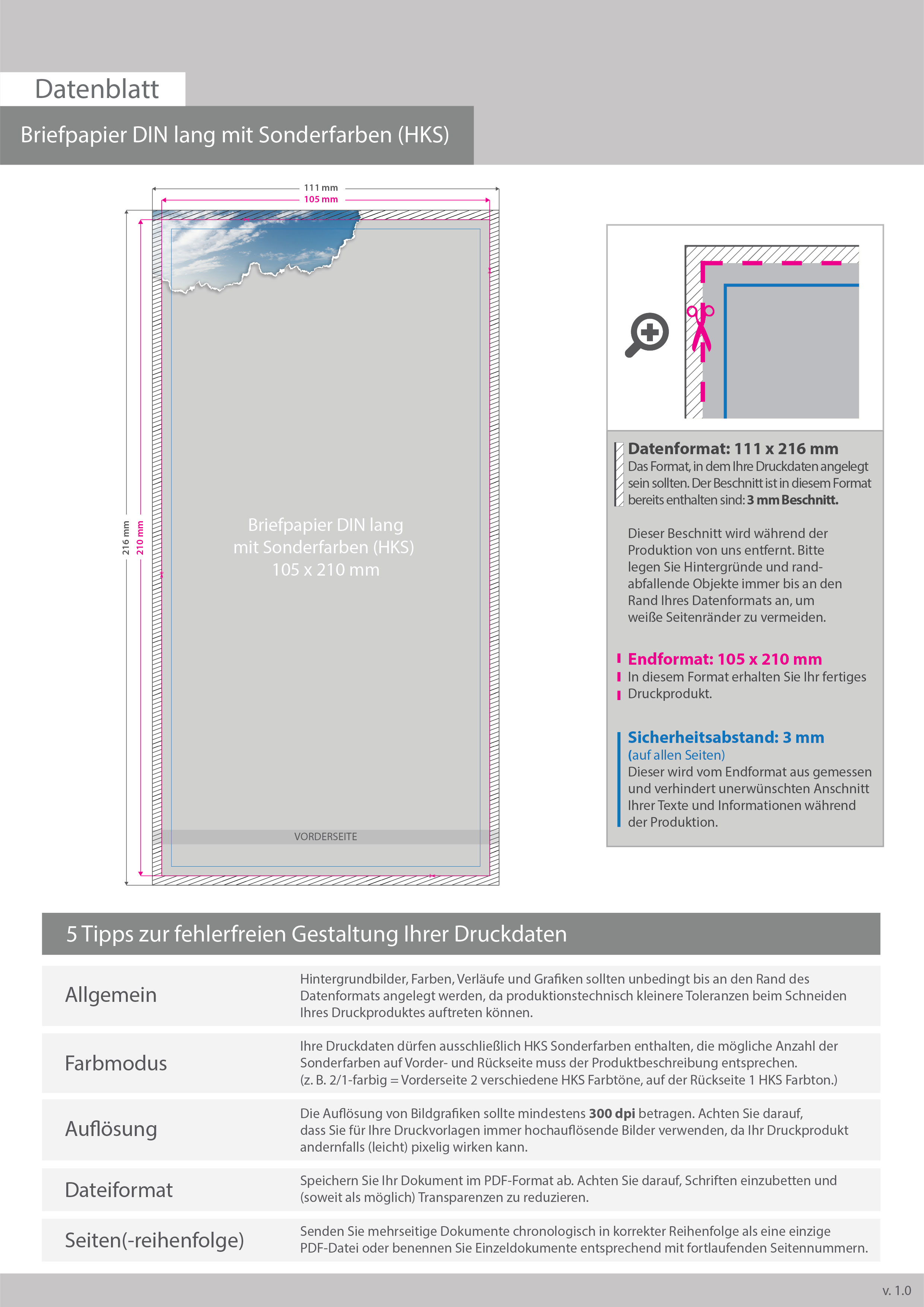 Briefpapier DIN lang, 4/0 farbig (Vorderseite: 4 Sonderfarben HKS / Rückseite: unbedruckt)