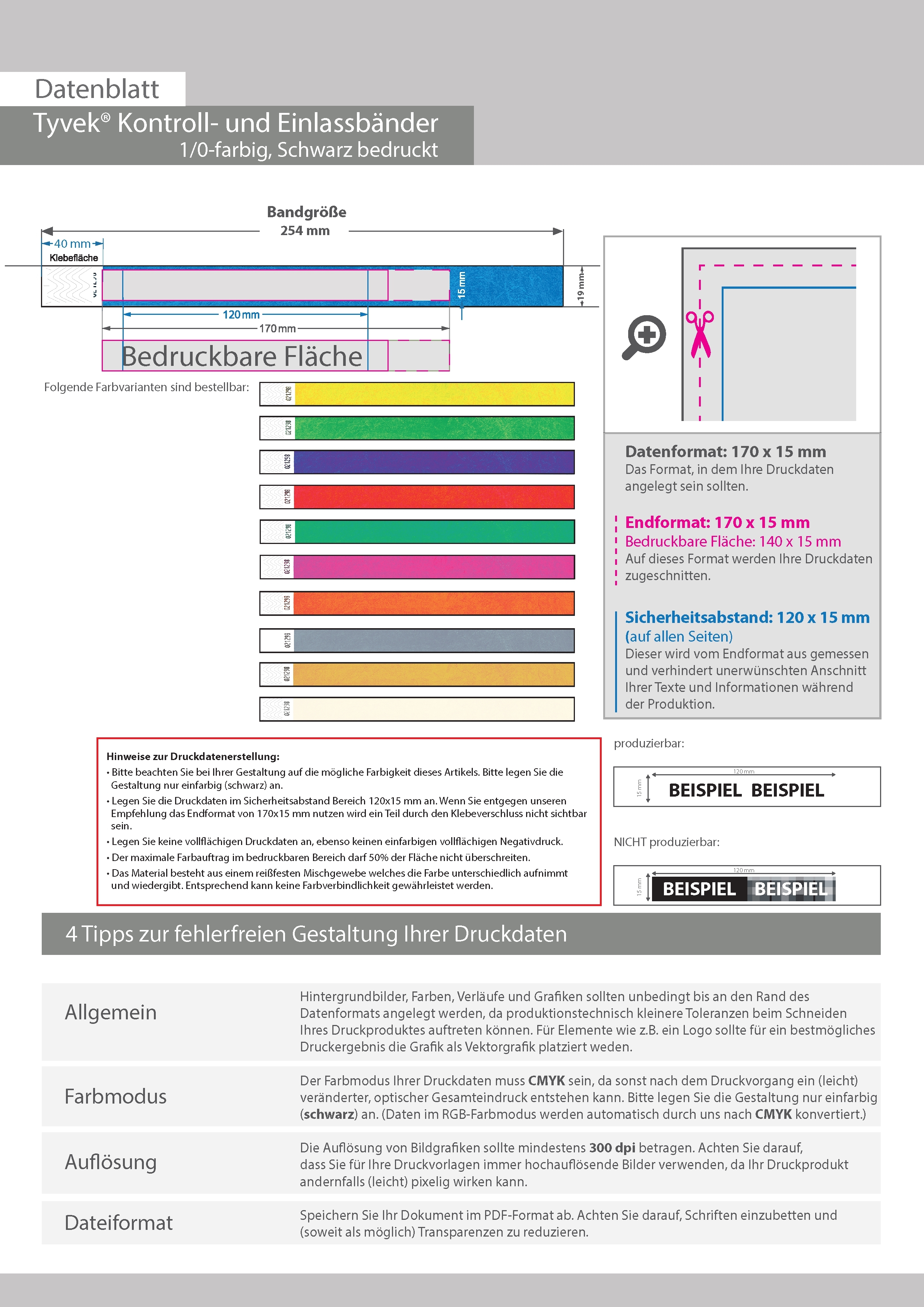 Tyvek®-Kontroll- und Einlassbänder, 1/0-farbig (schwarz) bedruckt