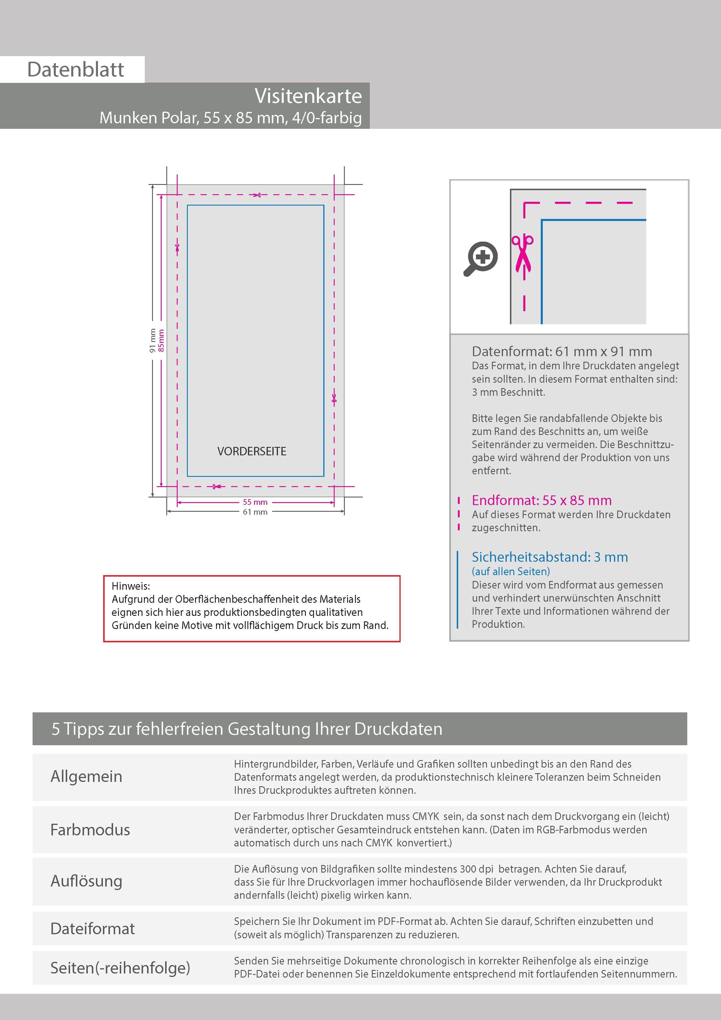 Visitenkarten hoch 4/0 farbig 55 x 85 mm (einseitiger Druck), Munken Polar