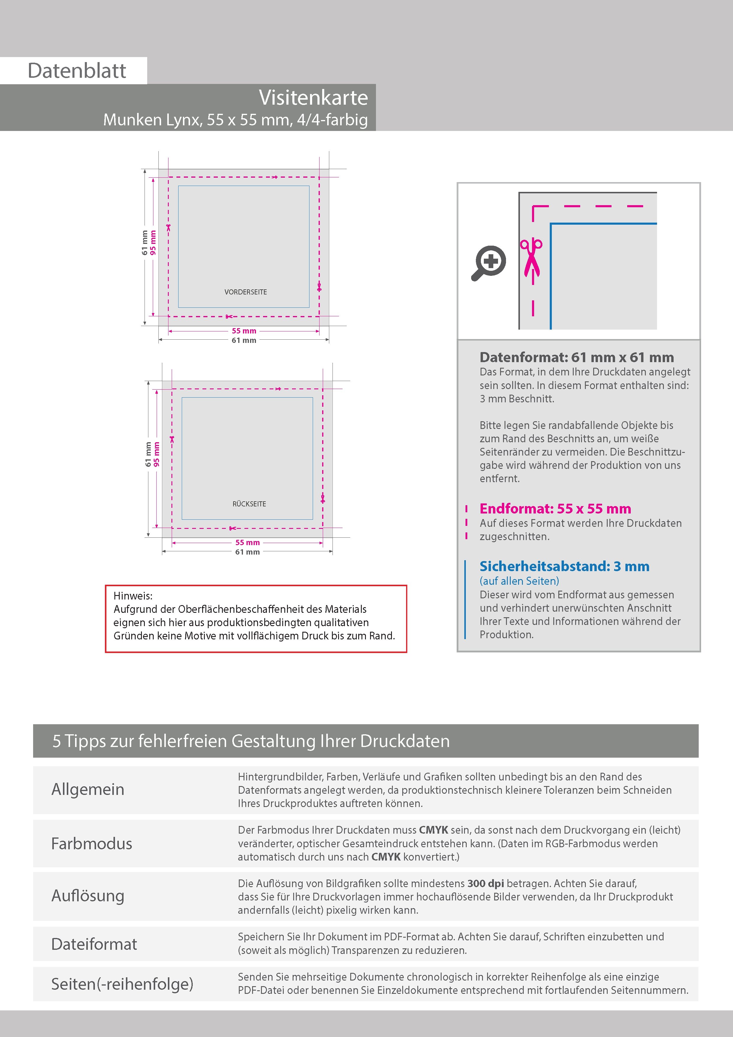 Visitenkarten quadratisch 4/4 farbig 55 x 55 mm (beidseitiger Druck), Munken Polar