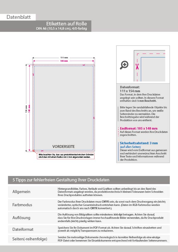 Hochwertige Etiketten auf Rolle DIN A6 (10,5 x 14,8 cm)